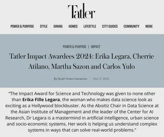 Erika received this recognition for her trailblazing contributions to data science and artificial intelligence in the Philippines — from founding the country’s first Master of Science in Data Science program at the Asian Institute of Management, to leading the national Center for AI Research (CAIR) as its inaugural Managing Director and Chief AI and Data Officer.